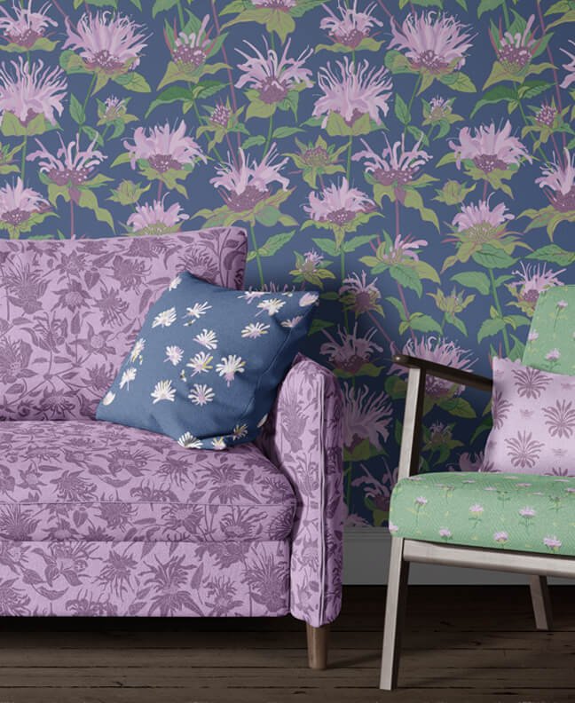 Hi, I’m Kerry from Studio of Considered Things. I’m a surface designer and visual thinker inspired by nature, and by historical and vintage design. I’m a nerd at heart so like to dig into the motifs and themes I illustrate, then bring those discoveries into my work to add meaning and depth. My style comes from my love of hand-drawn detail, varied linework and layered texture. Color is another focus. I choose palettes that hold their own without overpowering or disappearing so they can fit comfortably in any space. I design textiles, wallpaper and home decor for people who like to mix eras, cultures and styles in ways that feel considered and personal.