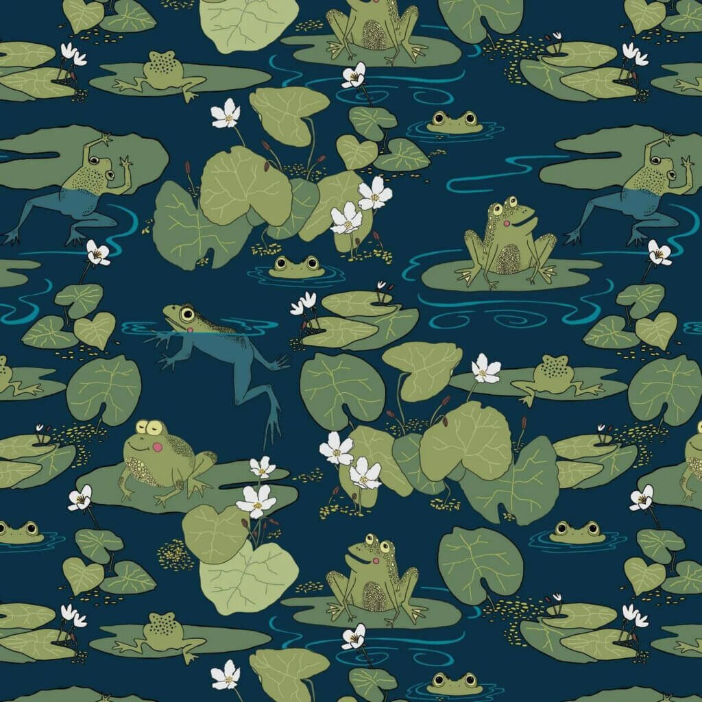 My first official “hero print” of a repeating pattern is complete. It still needs some work, but my frogs are happy for now hanging out in their pond. Why the heck I attempted something so complicated for my first major pattern is a mystery to me. But it was a lot of fun. The good news is, I had something in my head and was pretty successful at executing it. I can see things I need to fix but I am happy as I was able to pull this off. I feel like I was flying by the seat of my pants. But it was a fun ride.